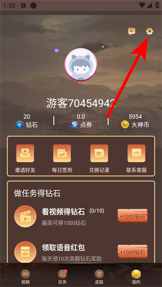 2、在個人頁面點擊右上角設置圖標,進入設置操作界面。
