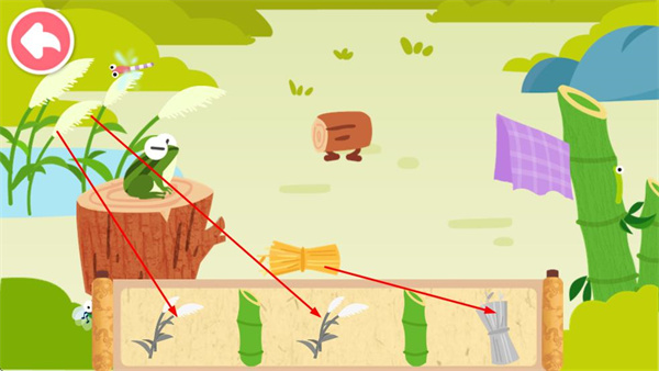 3、依次點(diǎn)擊對應(yīng)圖標(biāo),收集蘆葦、竹子、捆扎的原料,完成材料收集。