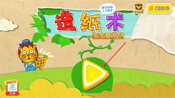1、點(diǎn)擊黃色三角形開始按鈕,進(jìn)入造紙術(shù)游戲環(huán)節(jié)。