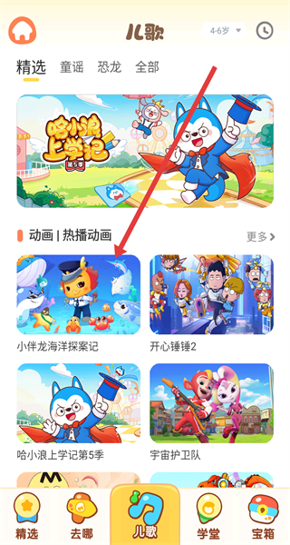 2、在主界面點(diǎn)擊底部“兒歌”,進(jìn)入兒歌頁面。