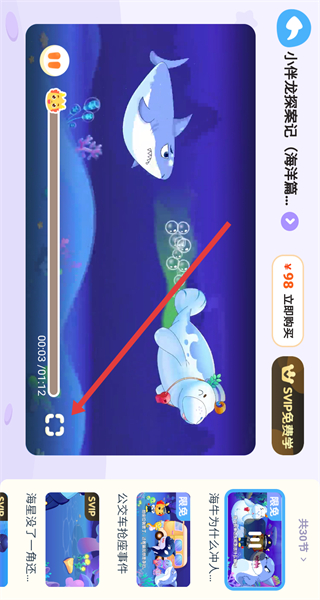 3、在兒歌頁面點(diǎn)擊“小伴龍海洋探案記”動(dòng)畫,進(jìn)入播放界面。