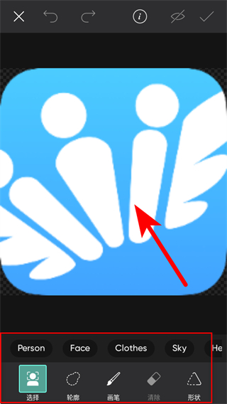 3.在摳圖界面中,可選擇Person、Face、Clothes等摳圖類別,使用輪廓、畫筆等工具對需要摳取的部分進(jìn)行編輯。