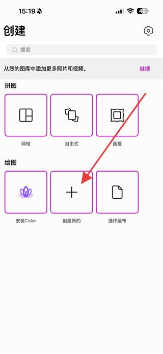1、點(diǎn)擊創(chuàng)建新的,進(jìn)入PicsArt的創(chuàng)作界面。