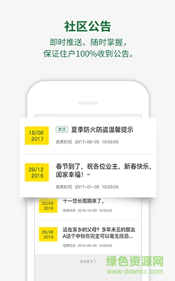 3、社區(qū)公告:即時(shí)推送,隨時(shí)掌握,保證住戶100%收到公告。