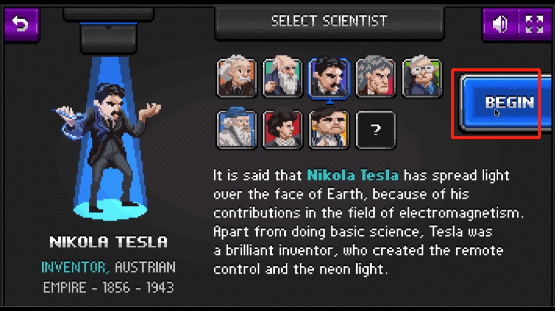 1、游戲中有超多的角色可以選擇,比如我們以特斯拉角色為例進(jìn)行選擇進(jìn)行挑戰(zhàn);