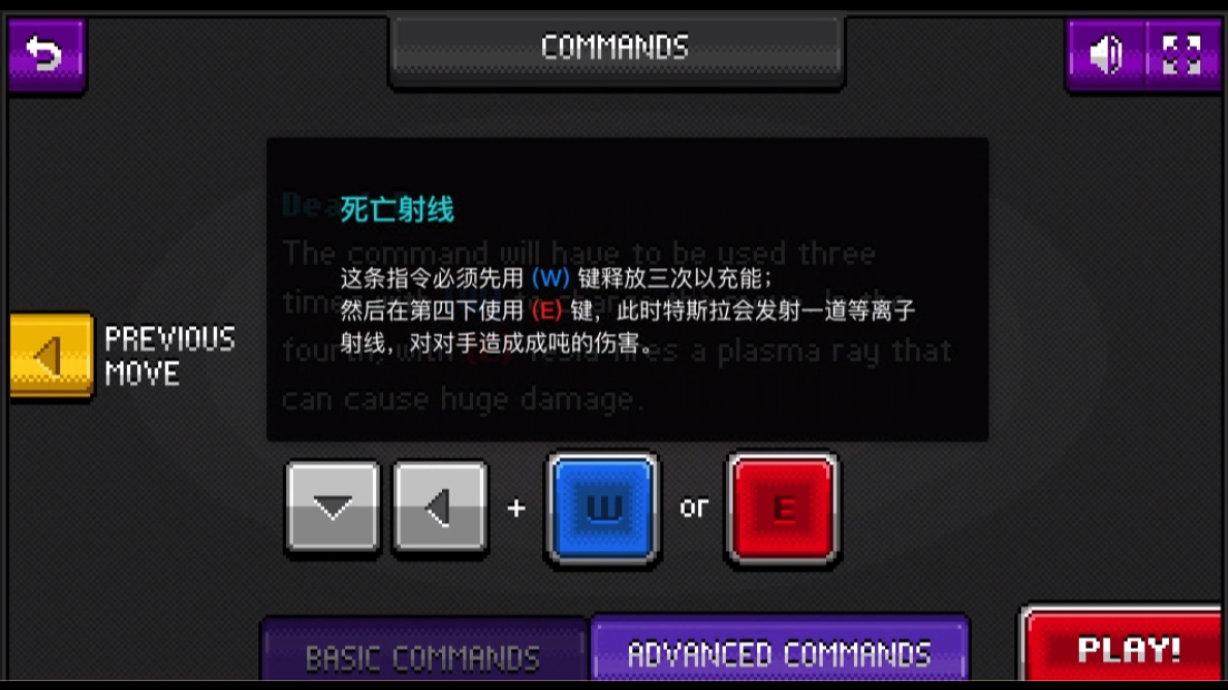 3、在這里我們可以看到特斯拉的特殊技能,通過(guò)點(diǎn)擊向下按鍵和向右按鍵加上W或者E就能發(fā)送射線攻擊;