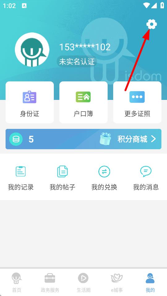 2、在我的頁面中,點(diǎn)擊右上方的齒輪設(shè)置圖標(biāo)。