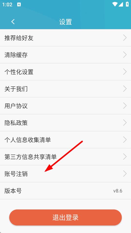 3、進(jìn)入設(shè)置頁面后,向下滑動(dòng)找到并點(diǎn)擊賬號(hào)注銷選項(xiàng)。