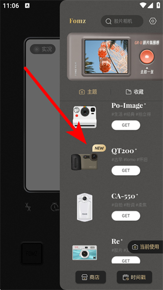 2、在主題選擇界面,挑選一款想要收藏的相機(jī),如Po-Image相機(jī)。