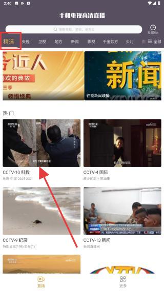 1、在首頁(yè)精選頻道或頂部導(dǎo)航欄中,找到想要收藏的直播頻道,點(diǎn)擊進(jìn)入直播播放頁(yè)面。