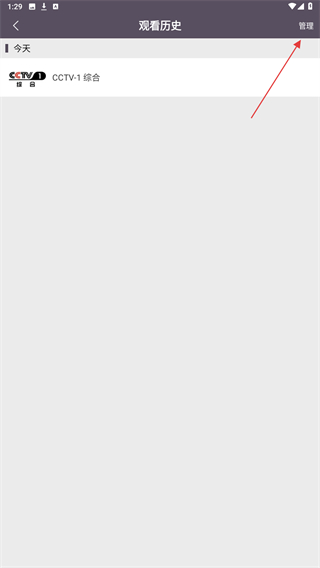 2、進(jìn)入觀看歷史的頁(yè)面內(nèi),再次點(diǎn)擊右上方管理的按鈕。
