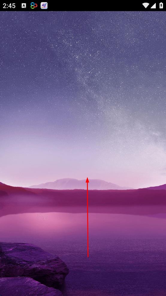 3、進(jìn)入星空湖泊背景的桌面界面后,按照紅色箭頭指示方向,向上滑動(dòng)屏幕,開(kāi)始探索GO桌面功能 。