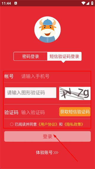 4、輸入新賬號的手機號碼、圖形驗證碼、短信驗證碼,勾選協(xié)議后點擊登錄,即可切換賬號。
