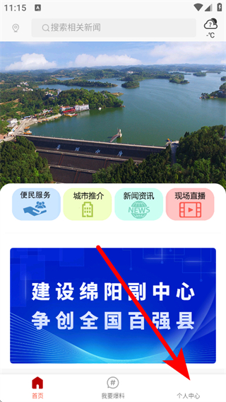 1、在直播三臺首頁,點擊個人中心選項,進入個人中心界面。