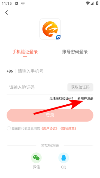 3、在登錄注冊頁面,點擊新用戶注冊選項,進入注冊信息填寫界面。