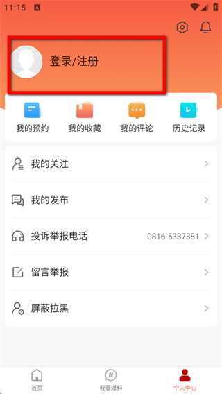 2、在個人中心界面,點擊登錄/注冊選項,進入登錄注冊頁面。