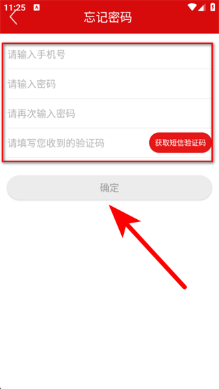 3、在忘記密碼頁面,依次輸入信息后,點擊確定完成密碼找回操作。