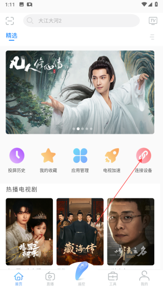 手機(jī)連接電視成功后進(jìn)入[工具]頁面。