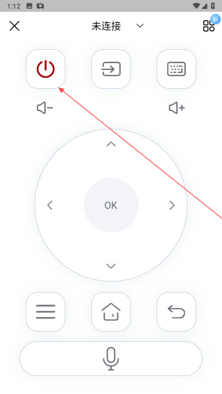3、連接成功后,返回APP首頁點(diǎn)擊底部遙控選項(xiàng),進(jìn)入虛擬遙控器界面,能像使用實(shí)體遙控器一樣操控康佳電視,比如點(diǎn)擊電源按鈕開關(guān)電視,還能進(jìn)行頻道切換、音量調(diào)節(jié)等操作。