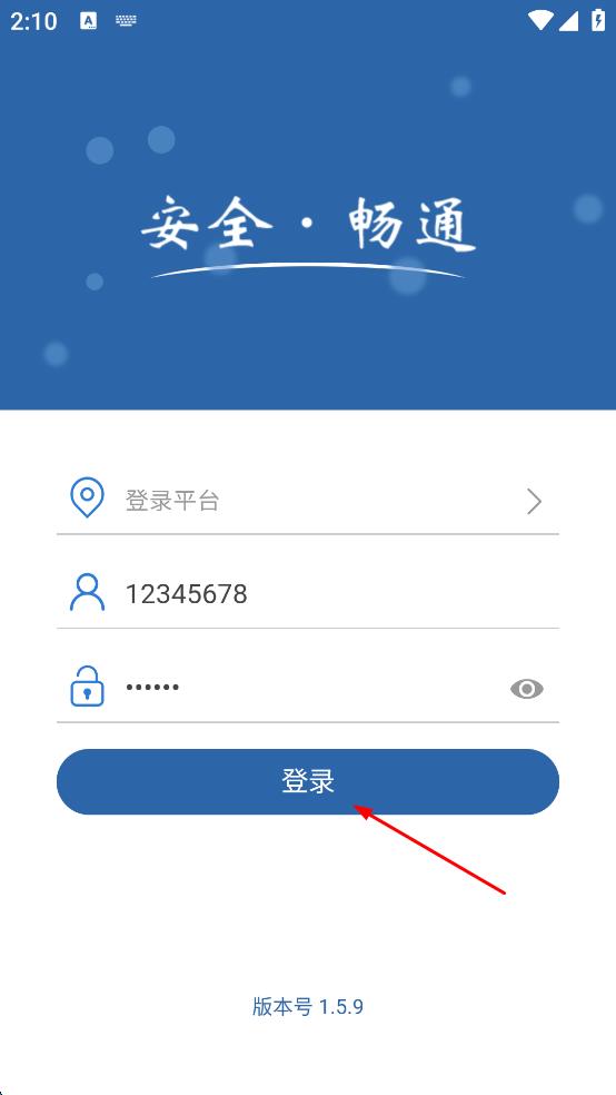 4、完成用戶名和密碼輸入后,點(diǎn)擊“登錄”按鈕,嘗試登錄該交通管理類APP。