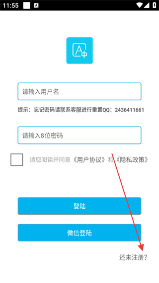 3、在登錄頁面,點擊右下角還未注冊?的文字,進入注冊頁面。