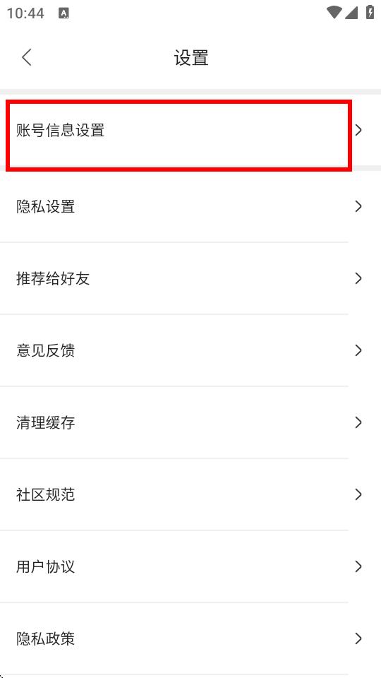 3、在設(shè)置頁(yè)面中,點(diǎn)擊賬號(hào)信息設(shè)置選項(xiàng)。