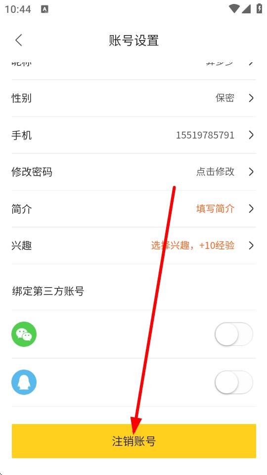 4、進(jìn)入賬號(hào)設(shè)置頁(yè)面后,下拉找到注銷賬號(hào)按鈕,點(diǎn)擊后按照提示操作即可完成賬號(hào)注銷。