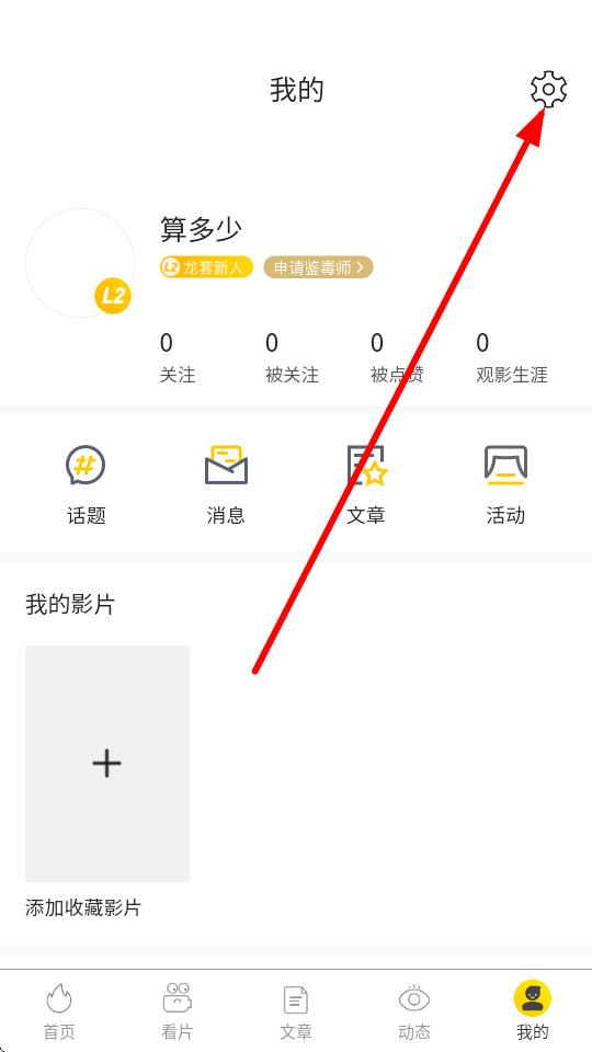 2、進(jìn)入我的頁(yè)面后,點(diǎn)擊右上角的設(shè)置圖標(biāo)。