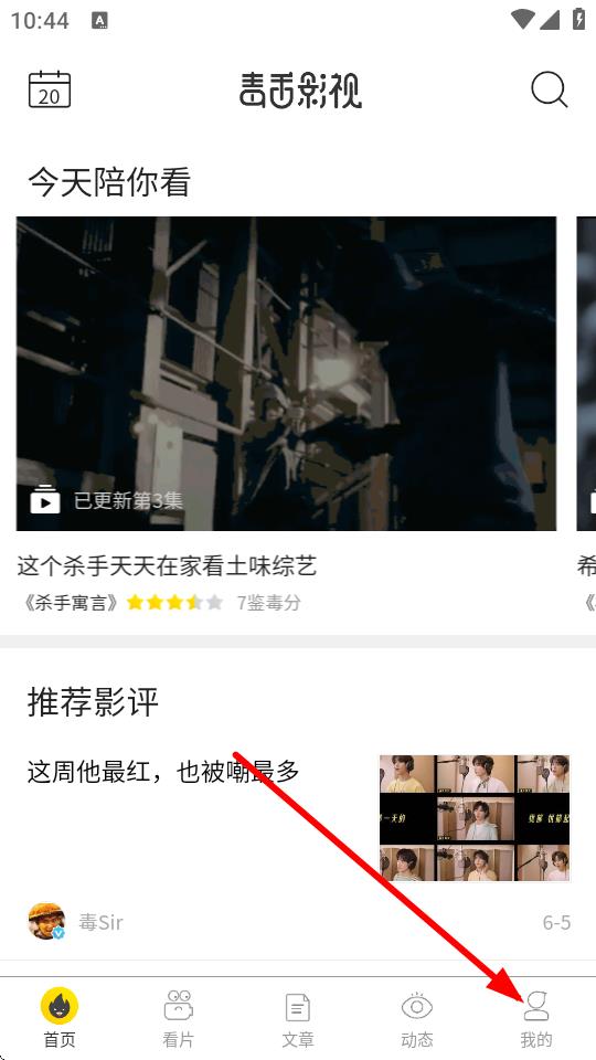 1、打開毒舌影視app,在首頁(yè)點(diǎn)擊右下角我的選項(xiàng)。