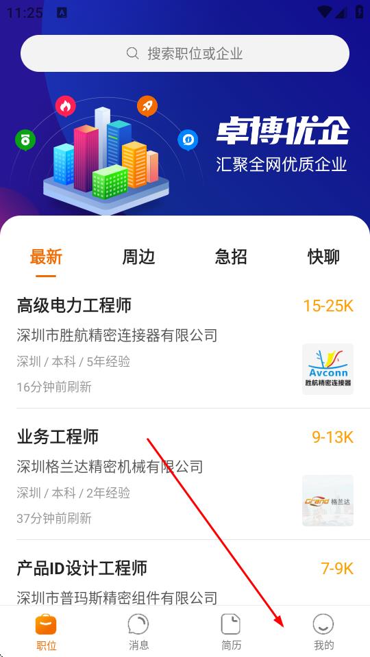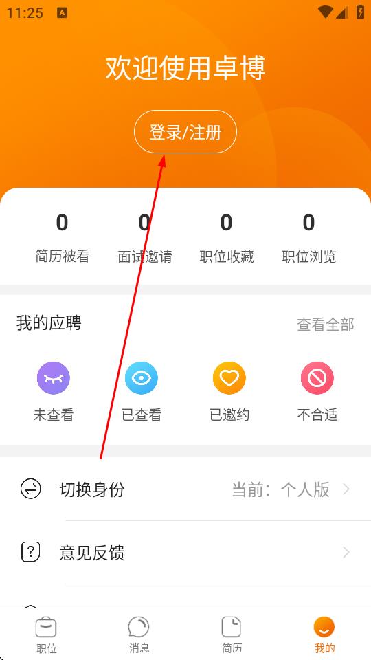 1、打開卓博人才網(wǎng)APP,點(diǎn)擊底部導(dǎo)航欄中的我的。