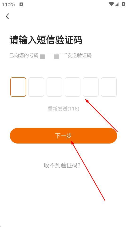 4、在請(qǐng)輸入短信驗(yàn)證碼頁面,填寫收到的短信驗(yàn)證碼,點(diǎn)擊下一步。