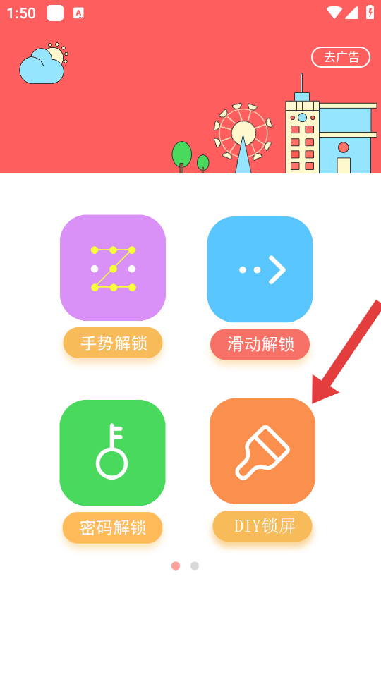 1、在鎖屏大全主界面,點擊DIY鎖屏的選項,進入DIY鎖屏設(shè)置頁面。