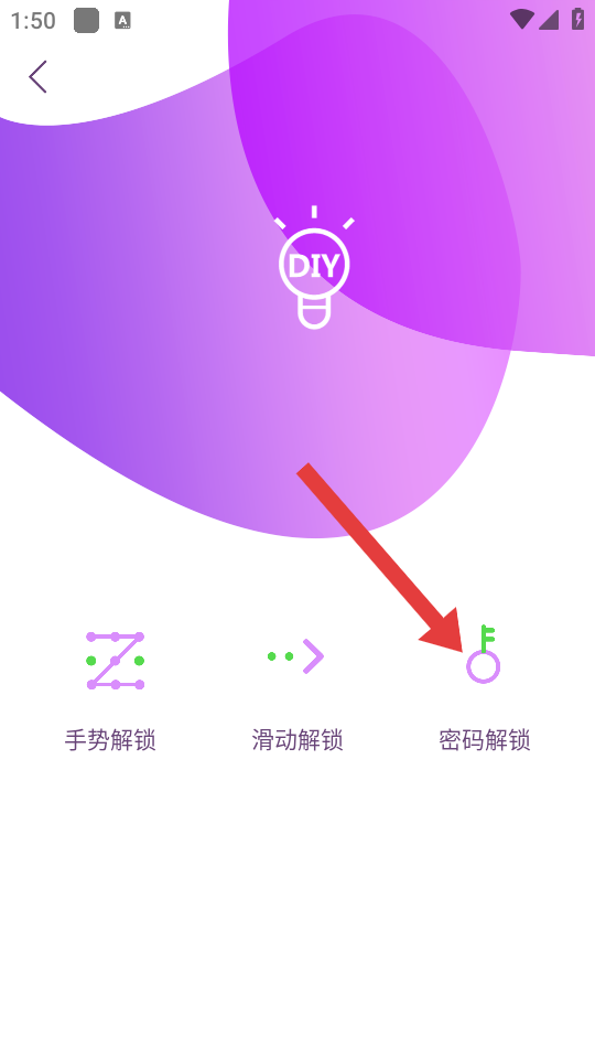 2、在DIY鎖屏設(shè)置頁面,點擊密碼解鎖選項,進入DIY密碼設(shè)置界面。