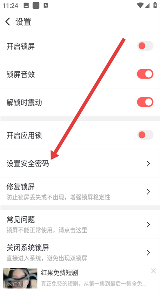 3、在設(shè)置界面,點擊設(shè)置安全密碼選項,進入重設(shè)密碼界面。