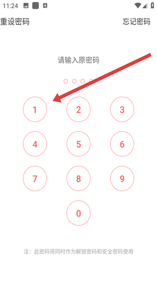 4、在重設(shè)密碼界面,輸入原密碼后,按提示設(shè)置新密碼,完成安全密碼的設(shè)置操作。