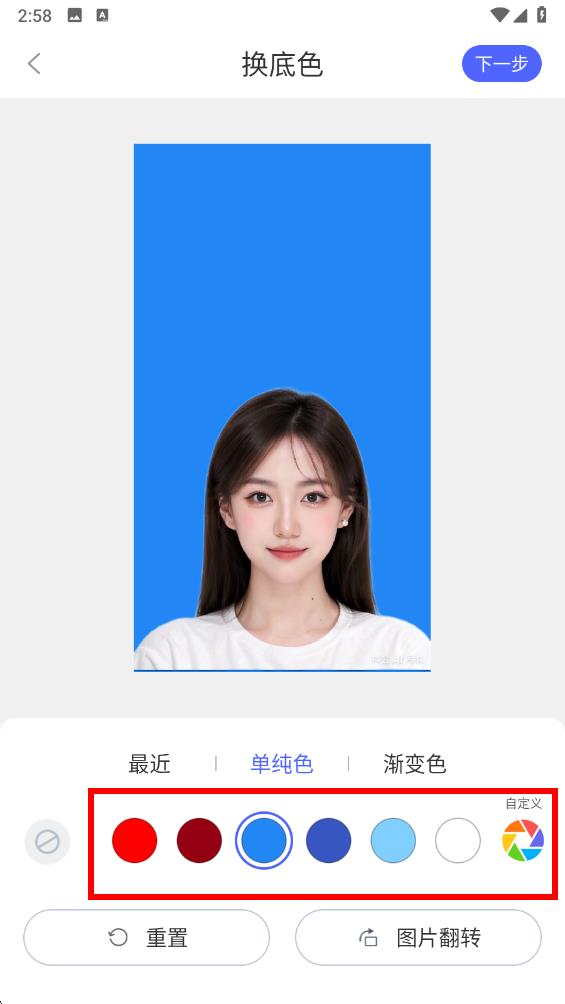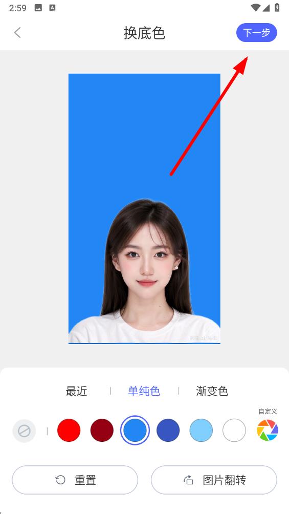 4、確定底色選項后,點擊右上角的下一步,即可完成證件照底色更換。
