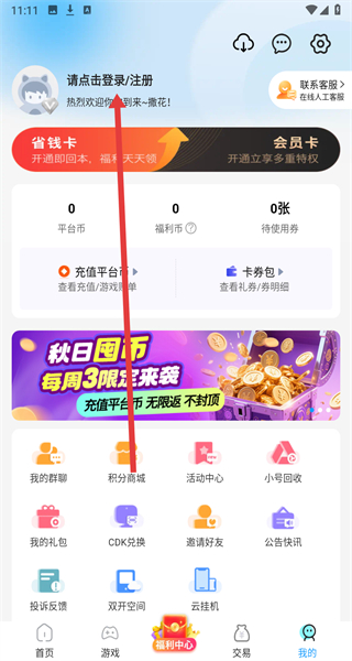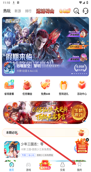1、在進(jìn)入到巴兔游戲首頁(yè)中時(shí),可以點(diǎn)擊右下角我的按鈕,進(jìn)入我的主頁(yè)。