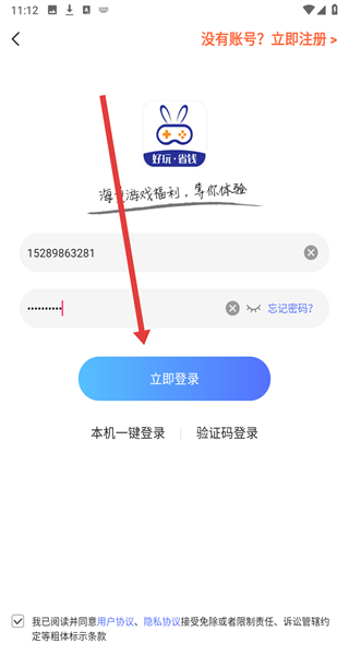 4、在填寫完登錄賬號(hào)信息后,通過(guò)點(diǎn)擊立即登錄按鈕,即可完成登錄賬號(hào)。