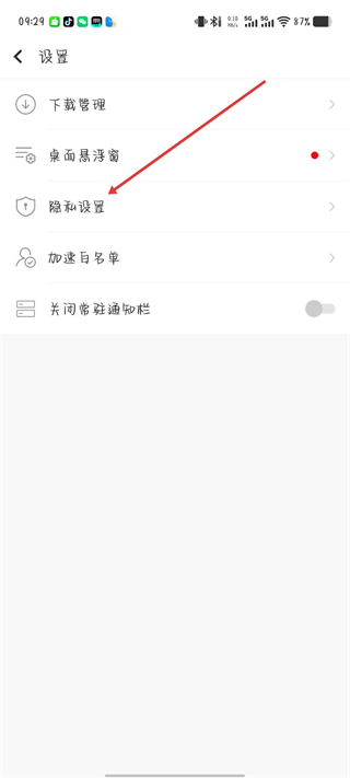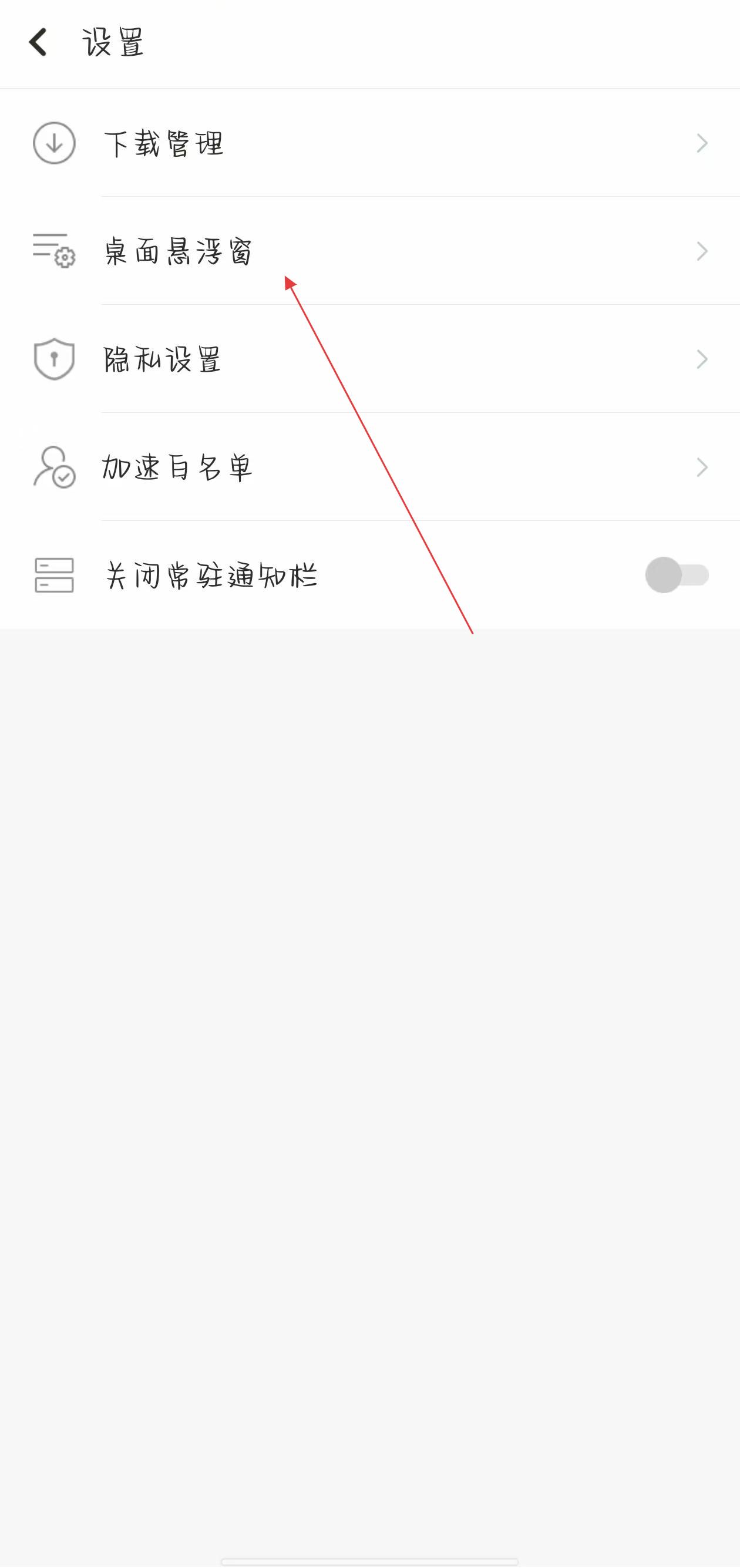 3、在設置界面里,點擊桌面懸浮窗選項,進入桌面懸浮窗設置頁面。