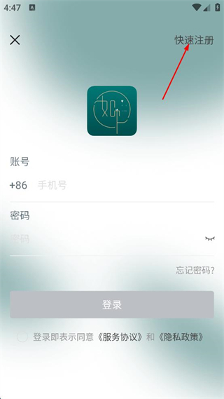1、打開如見APP登錄頁面,點擊右上角快速注冊按鈕。