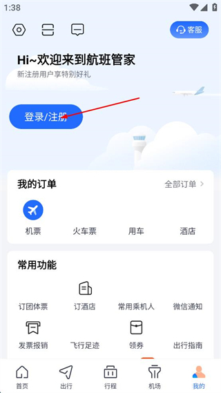 1、打開(kāi)航班管家應(yīng)用,點(diǎn)擊界面底部的我的選項(xiàng),進(jìn)入個(gè)人中心頁(yè)面。