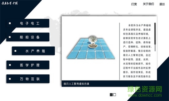 本應(yīng)用程序?yàn)榉抡娼虒W(xué).中國網(wǎng)站同名APP。目前展示內(nèi)容有五大類:電子電工、船舶設(shè)備、水產(chǎn)養(yǎng)殖、醫(yī)學(xué)護(hù)理以及萬物互聯(lián),具體包括電動機(jī)星三角啟動控制電路故障處理虛擬仿真、萬用表的使用入門、船用大型低速二沖程柴油機(jī)結(jié)構(gòu)仿真展示、船用分油機(jī)認(rèn)知、扇貝人工繁育虛擬仿真、養(yǎng)殖水環(huán)境化學(xué)實(shí)驗(yàn)課程系列仿真軟件、老年護(hù)理虛擬仿真軟件、視器解剖、智慧商超等九個(gè)模塊的內(nèi)容介紹,其中前兩個(gè)模塊可進(jìn)行實(shí)操體驗(yàn)。第一個(gè)模塊內(nèi)容著重培養(yǎng)和訓(xùn)練學(xué)生分析問題、解決問題的動手實(shí)踐能力。其他模塊內(nèi)容我們將會以獨(dú)立APP形式發(fā)布。