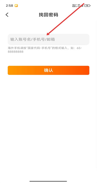 1、在“找回密碼”頁面輸入賬號名/手機(jī)號/郵箱,點(diǎn)擊“確認(rèn)”,進(jìn)入驗(yàn)證碼驗(yàn)證環(huán)節(jié)。