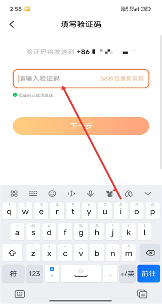 2、進(jìn)入“填寫驗(yàn)證碼”頁面,輸入收到的短信驗(yàn)證碼,完成身份驗(yàn)證。