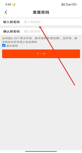 4、進(jìn)入“重置密碼”頁面,依次輸入新密碼與確認(rèn)新密碼,提交后完成密碼重置。
