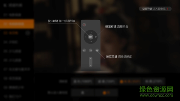 1.如果看視頻之前忘記設(shè)置電視畫(huà)質(zhì)怎么辦?沒(méi)關(guān)系,在播放電視的時(shí)候,也可以使用遙控器呼出菜單欄,設(shè)置居于電視屏幕的底部,并不會(huì)影響觀看內(nèi)容,這樣就能進(jìn)行選集播放和畫(huà)面設(shè)置啦。