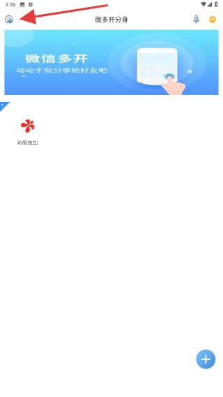 1、進(jìn)入微多開分身App,點(diǎn)擊主界面左上角的頭像圖標(biāo),進(jìn)入我的個(gè)人中心頁(yè)面。