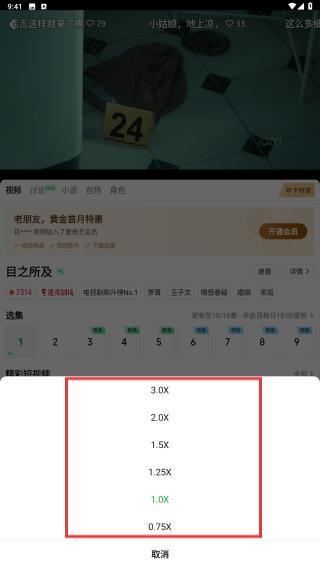 3、在彈出的倍速列表中,點(diǎn)擊想要的播放速度,如1.0X、1.5X、2.0X等,任需操作。