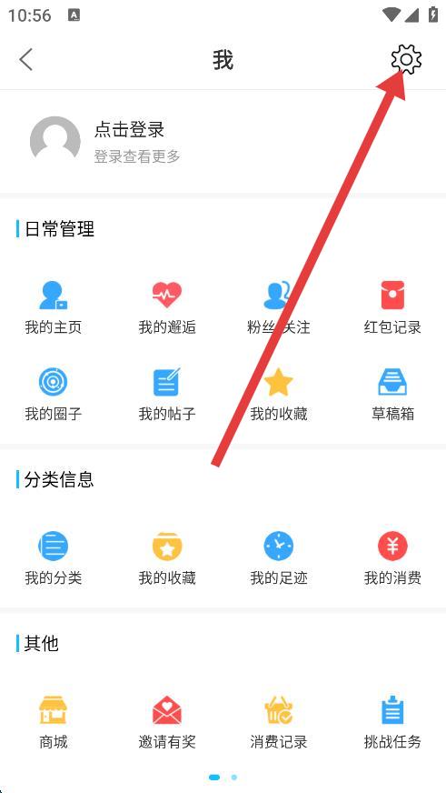 2、在我的頁面,點擊右上角的齒輪狀設置圖標。