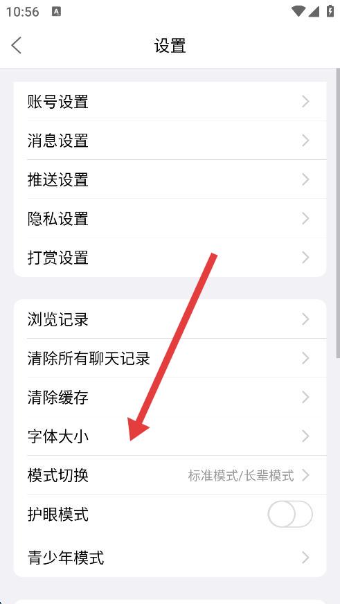3、進入設置頁面后,找到并點擊字體大小選項。